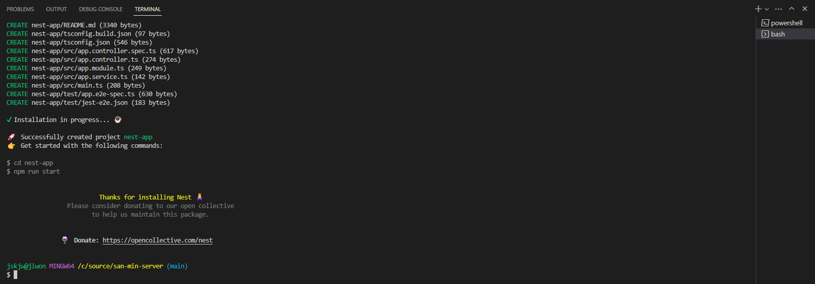 노트북을 새로 사서 환경설정을 다시 하던 도중…😂 VSCode 터미널에서 nest를 설치하려니