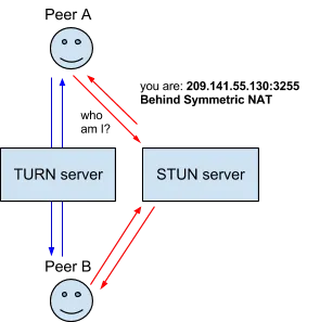 - STUN (Session Traversal Utilities for NAT): 공개 인터넷 상에서 디바이스의 공개 IP 주소와 포트 번호를 발견하는 메커니즘을 제공합니다. STUN 서버는 내부 네트워크에 있는 디바이스가 자신의 공개적으로 접근 가능한 주소를 알 수 있도록 도와줍니다.