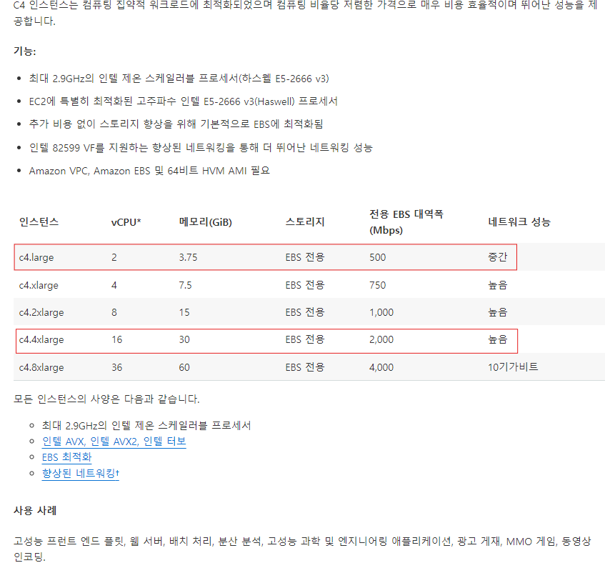 VM의 인스턴스의 상세한 스펙은 다음과 같습니다.